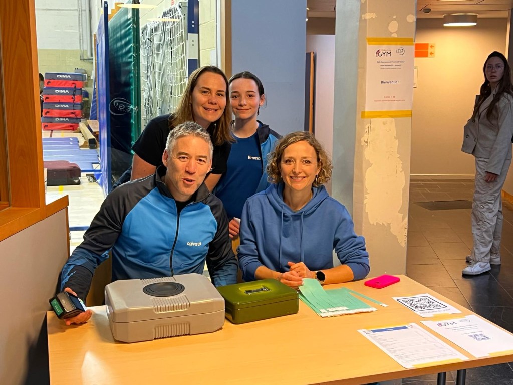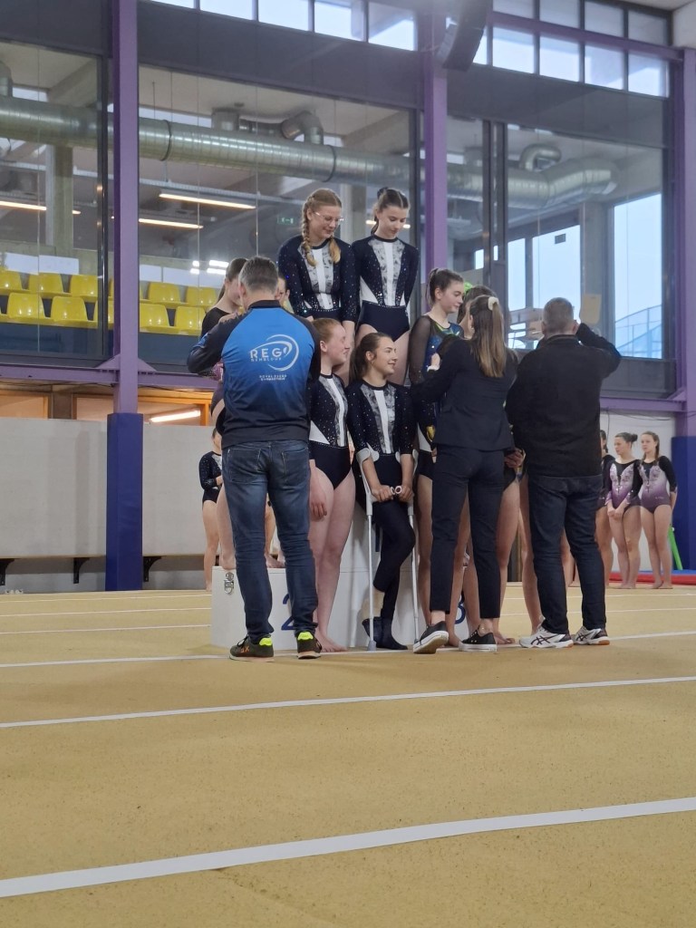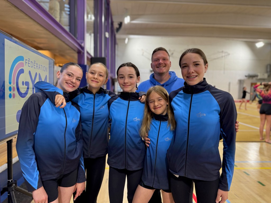 Une première pour 7 jeunes gymnastes du club de s’aligner en équipe. Elles s’en sont très bien sorties avec l’encadrement bienveillant de leurs coachs Mathias et Romane. Bravo les filles!
